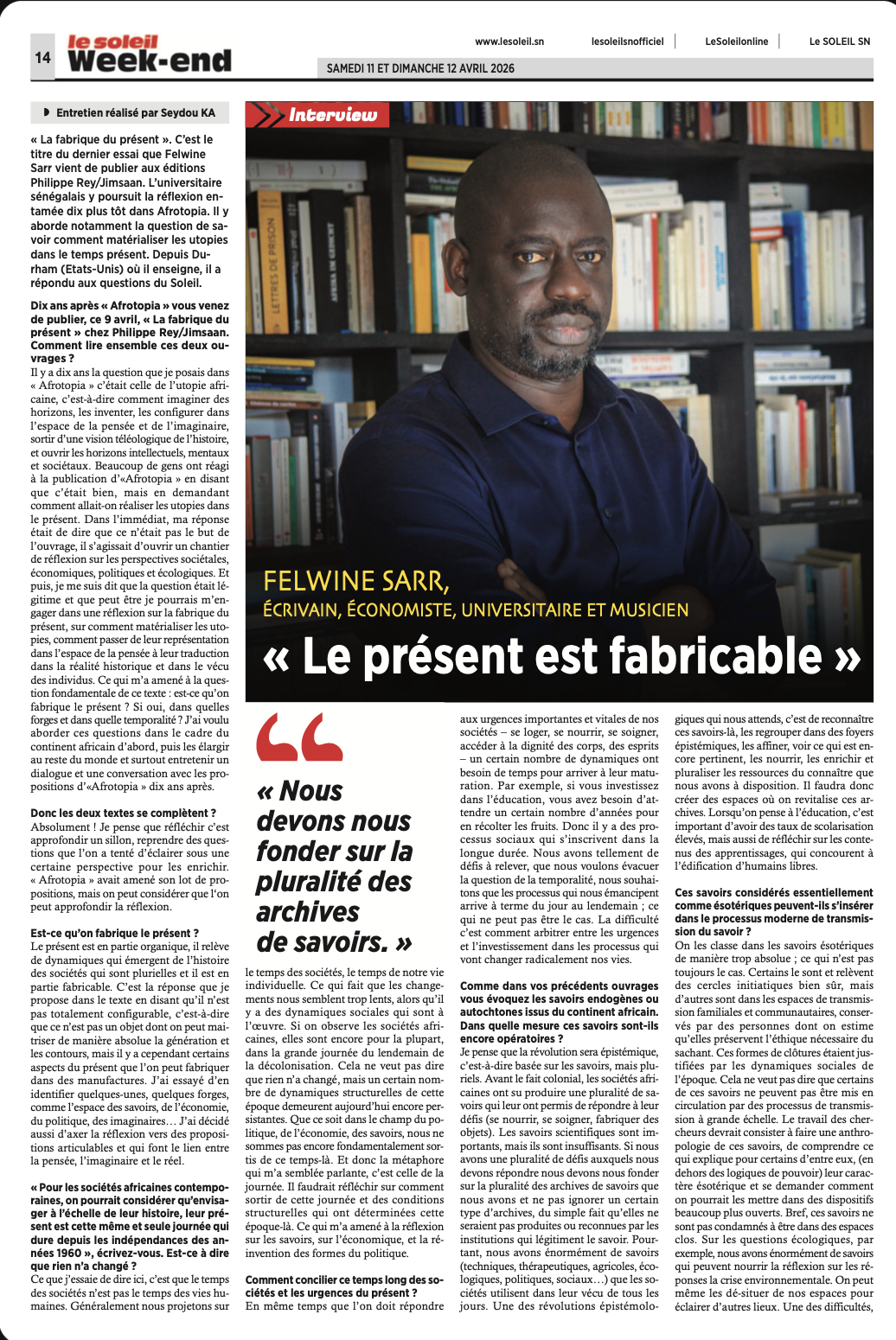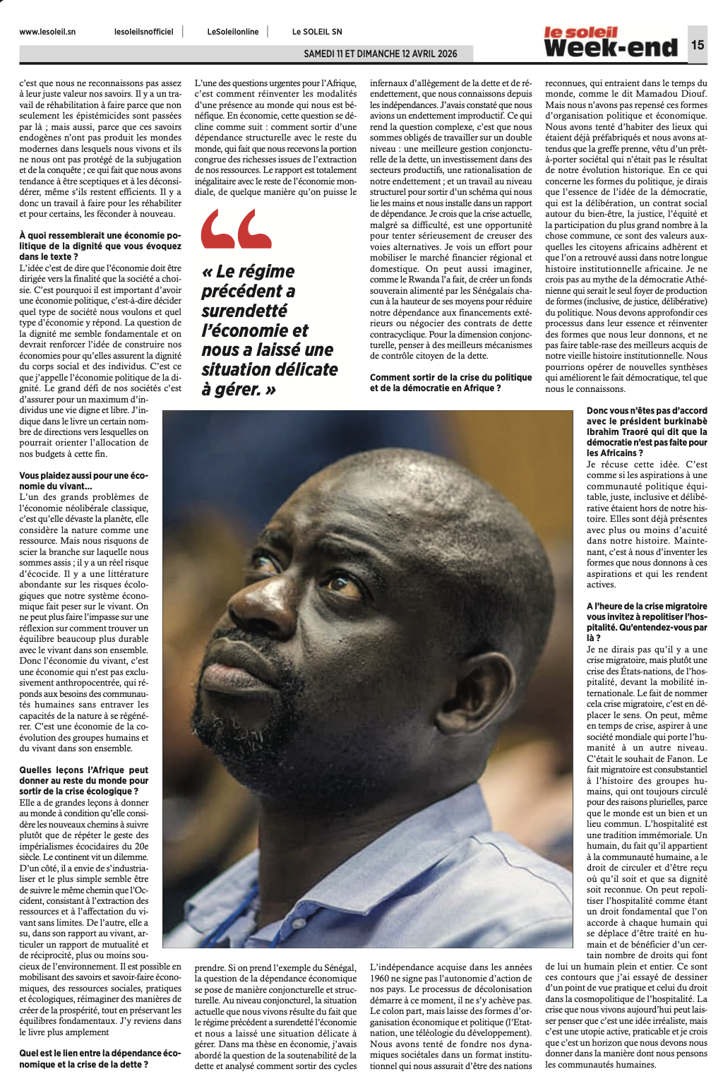 Entretien: Seydou Ka pour Le Soleil (Week-end)